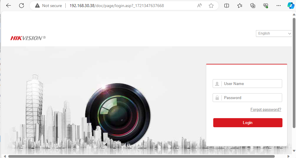In the browser address bar, type in http://Camera-IPAddress/, you will see the following login screen: (If you are not sure which one is the Hikvision camera's IP address, you will need to