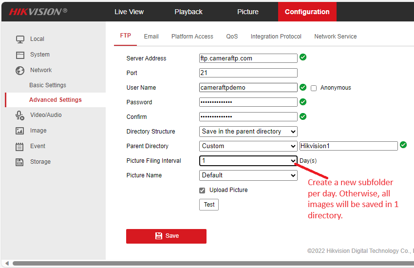 Note: Hikvision cameras cannot upload video clips to FTP server directly.