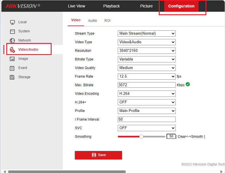 Click Configuration, then click Video/Audio, you can access the video profile settings screen as shown below: