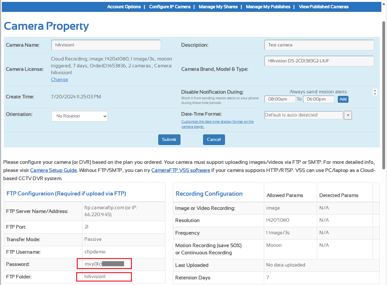 If it works fine, then it means the camera can upload footage to CameraFTP cloud. However, you still need to configure other steps for the camera