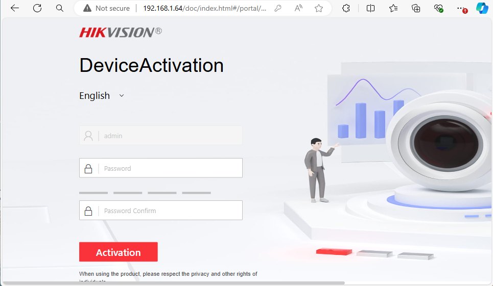 You might need to download the Hikvision mobile app for the initial configuration. The camera requires you to