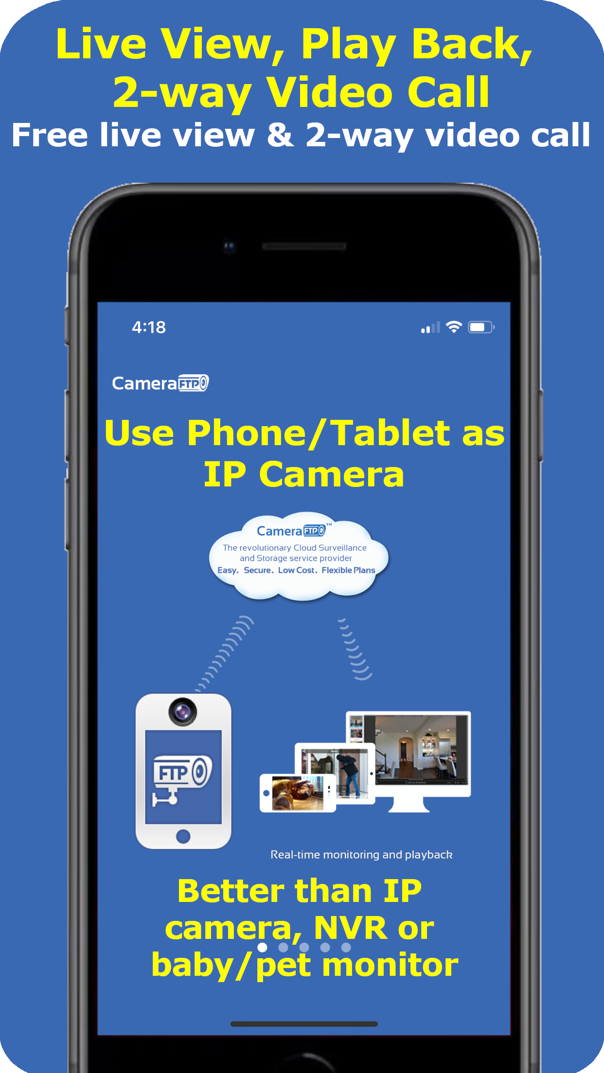 CameraFTP Mobile Security Camera is NOT a standalone app, it is part of CameraFTP's Home & Business Security service.