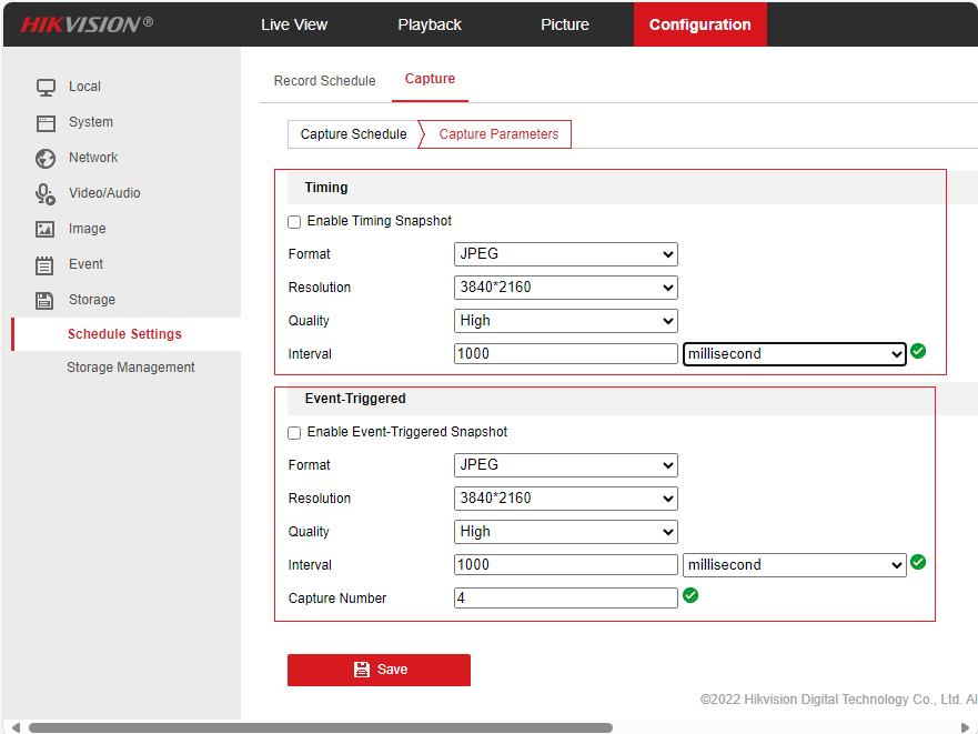Click Configuration -> Storage -> Schedule Settings -> Capture -> Capture Parameters, you will see the following screen: