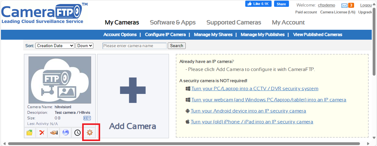 After your camera is setup, you can visit www.cameraftp.com to monitor or