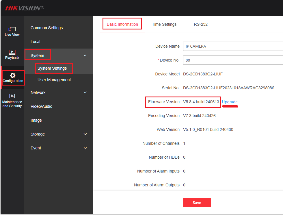 Hikvision Firmware V5.8.4 Build 240613 has changed the device's configuration interface significantly.