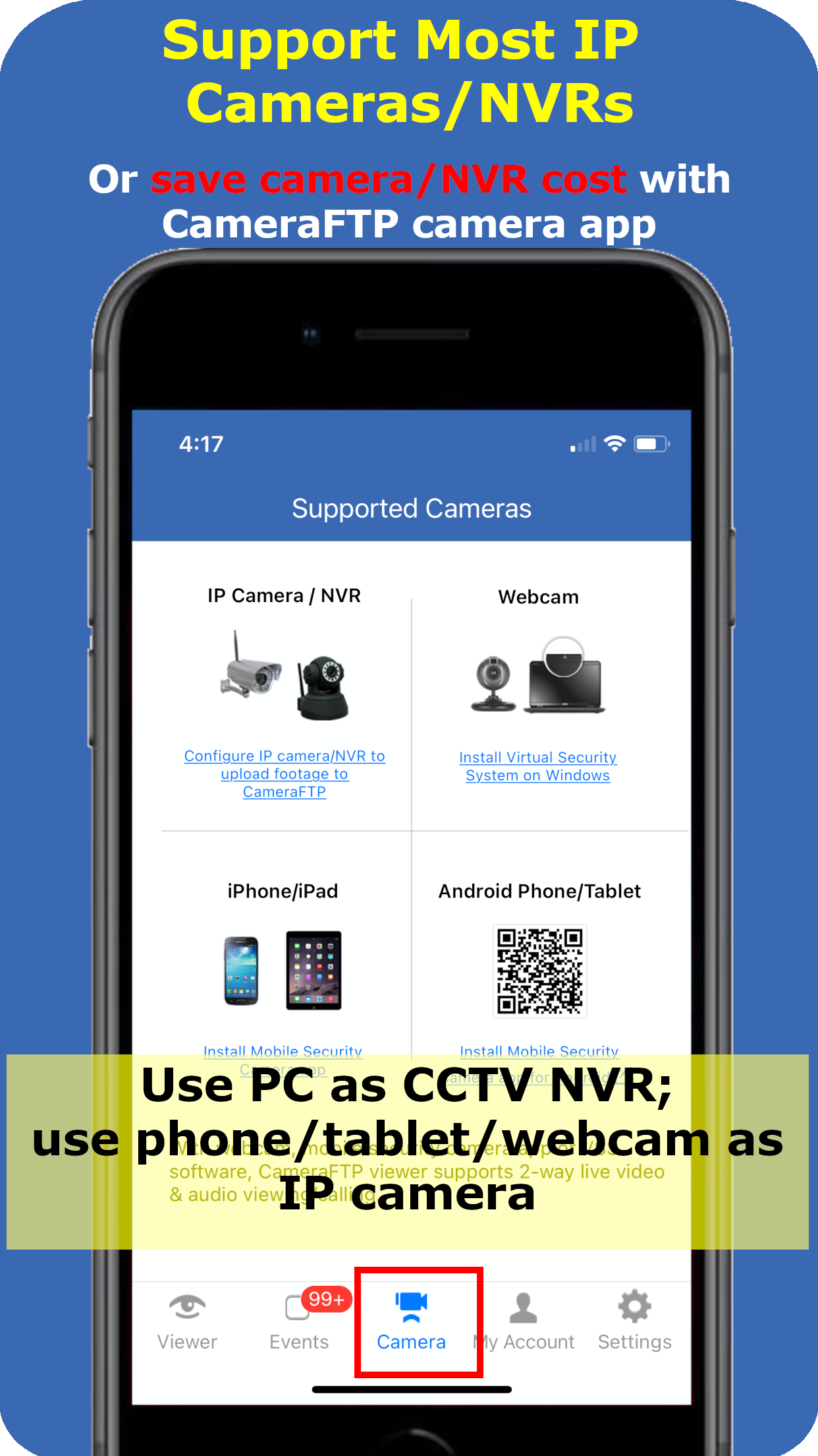 The APP can make your smartphone or tablet a cloud-based IP security camera.