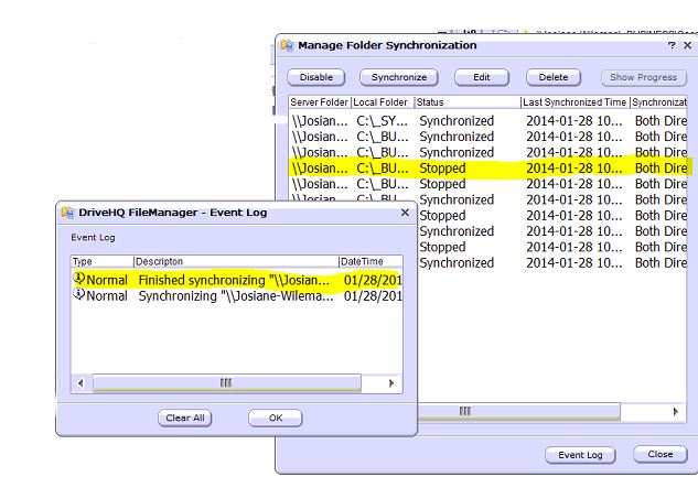 I have about 10 jobs on each machine and half of them just stops during syncing with a status of "stopped". I cleared the event log, re-ran one of them and in the even it shows as completed, but the status remains "stopped".